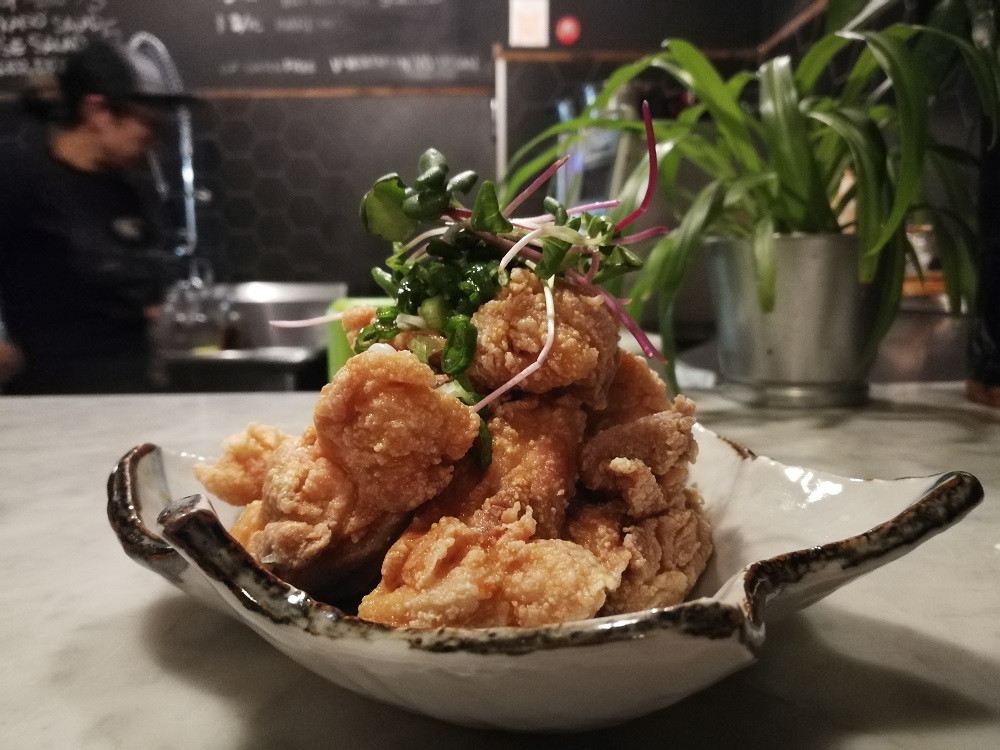 I FINALLY made it to Kitsune, right on time, and claimed one of the 4 seats in the restaurant, front row as Ami Goto sliced fish and formed oblongs of rice with skillful hands. “I think this is the best Dragon Roll I’ve ever had,” I think to myself, but then the chicken karaage, the pièce de résistance, arrives! You just gotta try it!