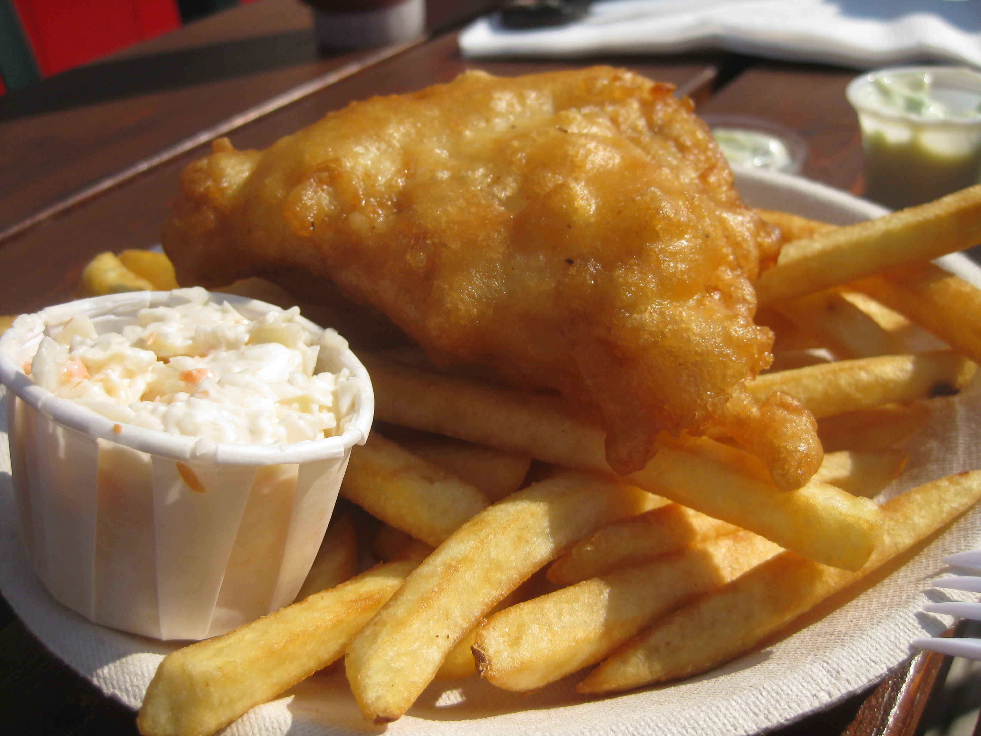 The typical seafood shack fare is served. We just ordered 1pc fish ‘n’ chips which were roughly $6 (less actually, but then add tax and it was $13-something for both of us). De-cent!